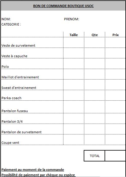 Bon commande boutique